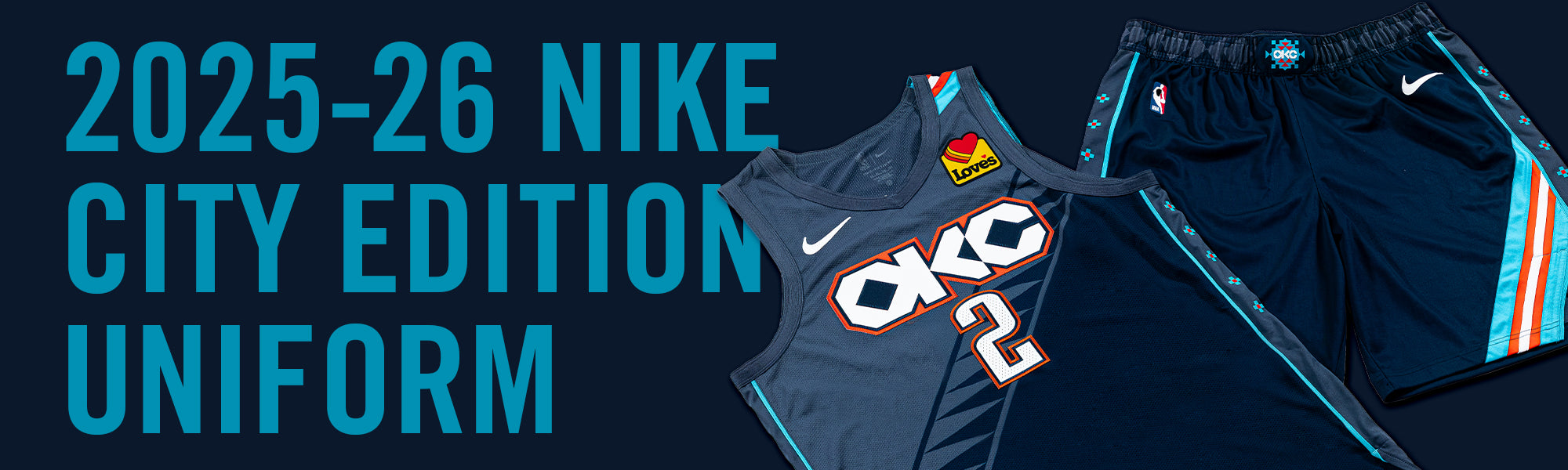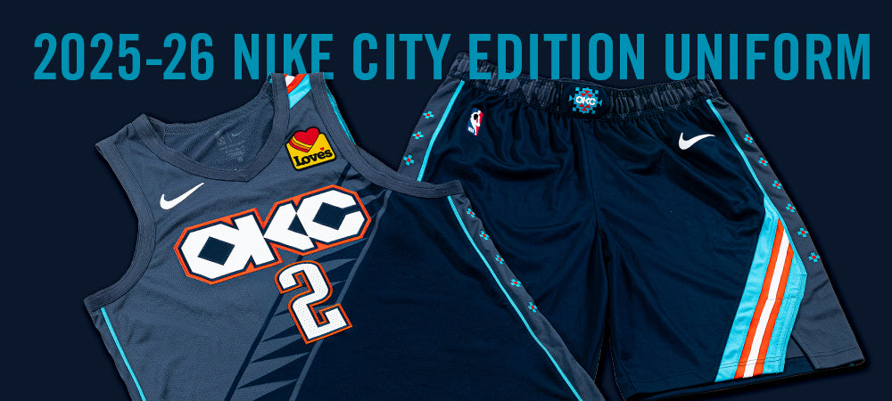 Inspired by the Oklahoma River that binds the north and south sides of our city, water-like teeth bridge the duotone colors, uniting both halves of the jersey into one.