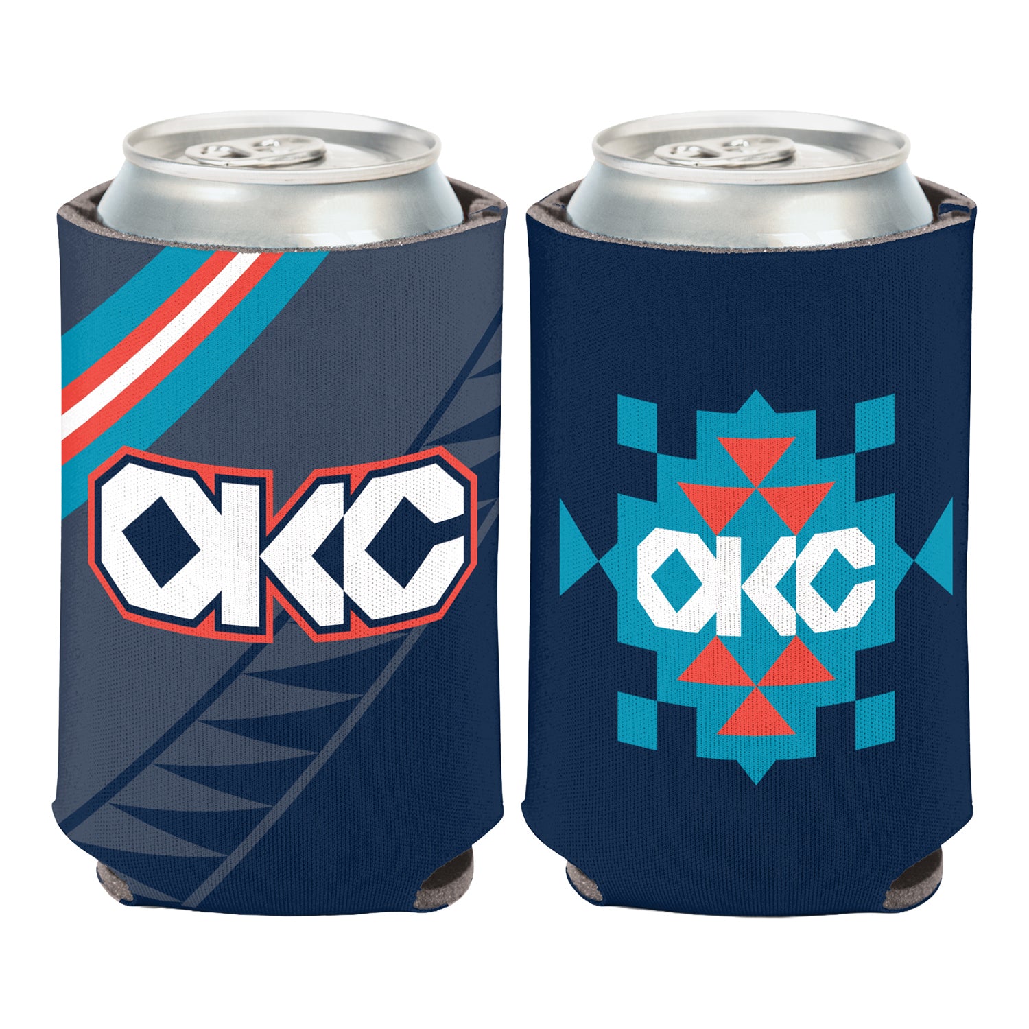 Keep your game-day beverage frosty with the 2025-26 OKC Thunder City Edition 12 oz Can Cooler. This collectible item features the powerful, Native and Indigenous-inspired geometric design of the city edition uniform. It's the perfect way to show your Thunder pride and keep your drink cold, from tipoff to final whistle.