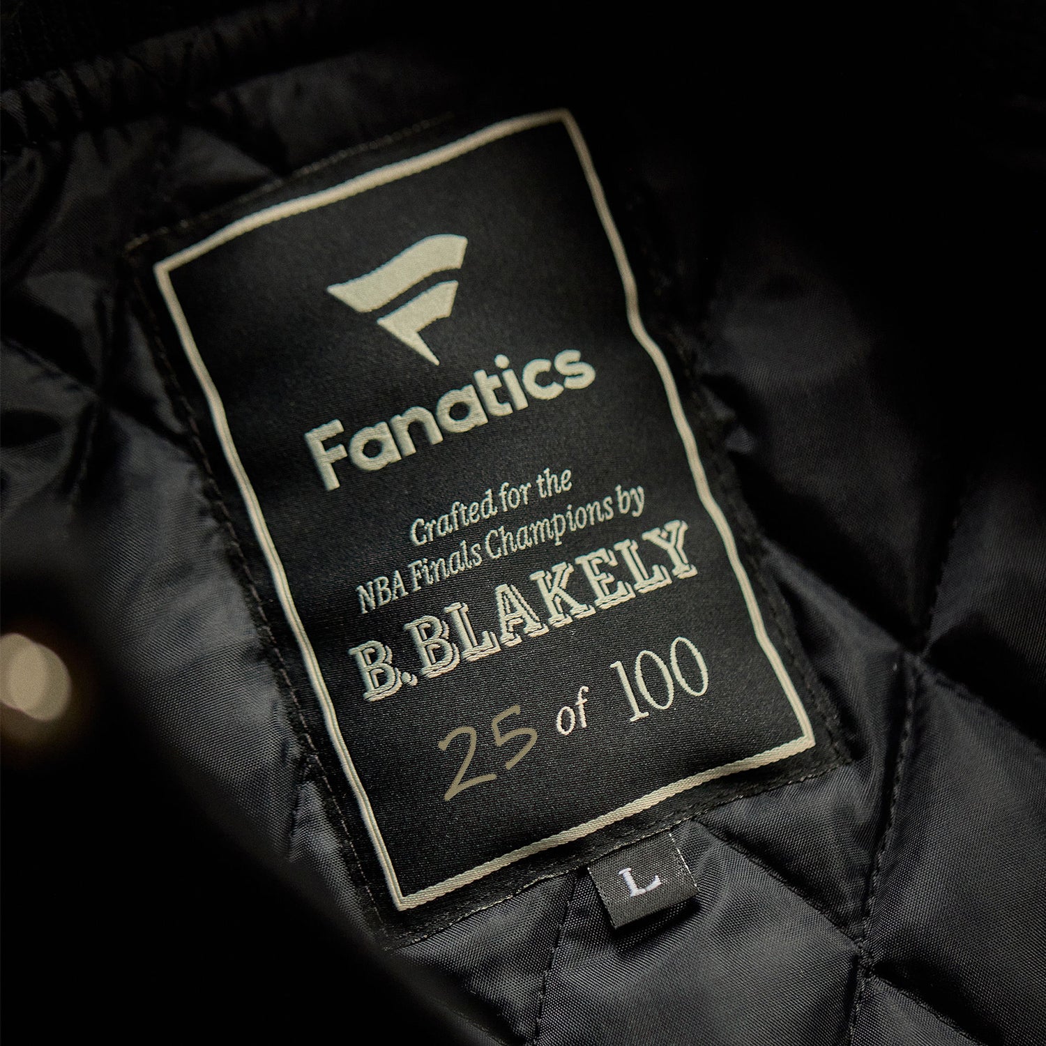 Celebrate this year’s NBA Finals Champion with this exclusive, limited-edition varsity jacket. With only 100 pieces produced, each jacket is individually hand-numbered, ensuring its uniqueness. Meticulously produced in USA by B. Blakely, this premium jacket features the finest wool and leather materials. The appliqués are crafted from USA-made chenille patches, while the NBA scripting on the right chest is hand chainstitched for a truly one-of-a-kind detail.