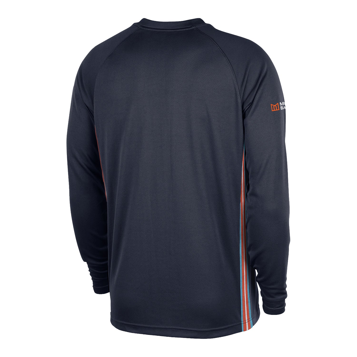 Gear up like your hardwood heroes in this 2025-26 OKC Thunder City Edition Pre-Game Long Sleeve Top from Nike. Crafted from lightweight, performance-ready polyester, this tee features screen-printed Thunder graphics inspired by Oklahoma’s Native heritage and City Edition design—perfect for warm-ups or everyday wear.