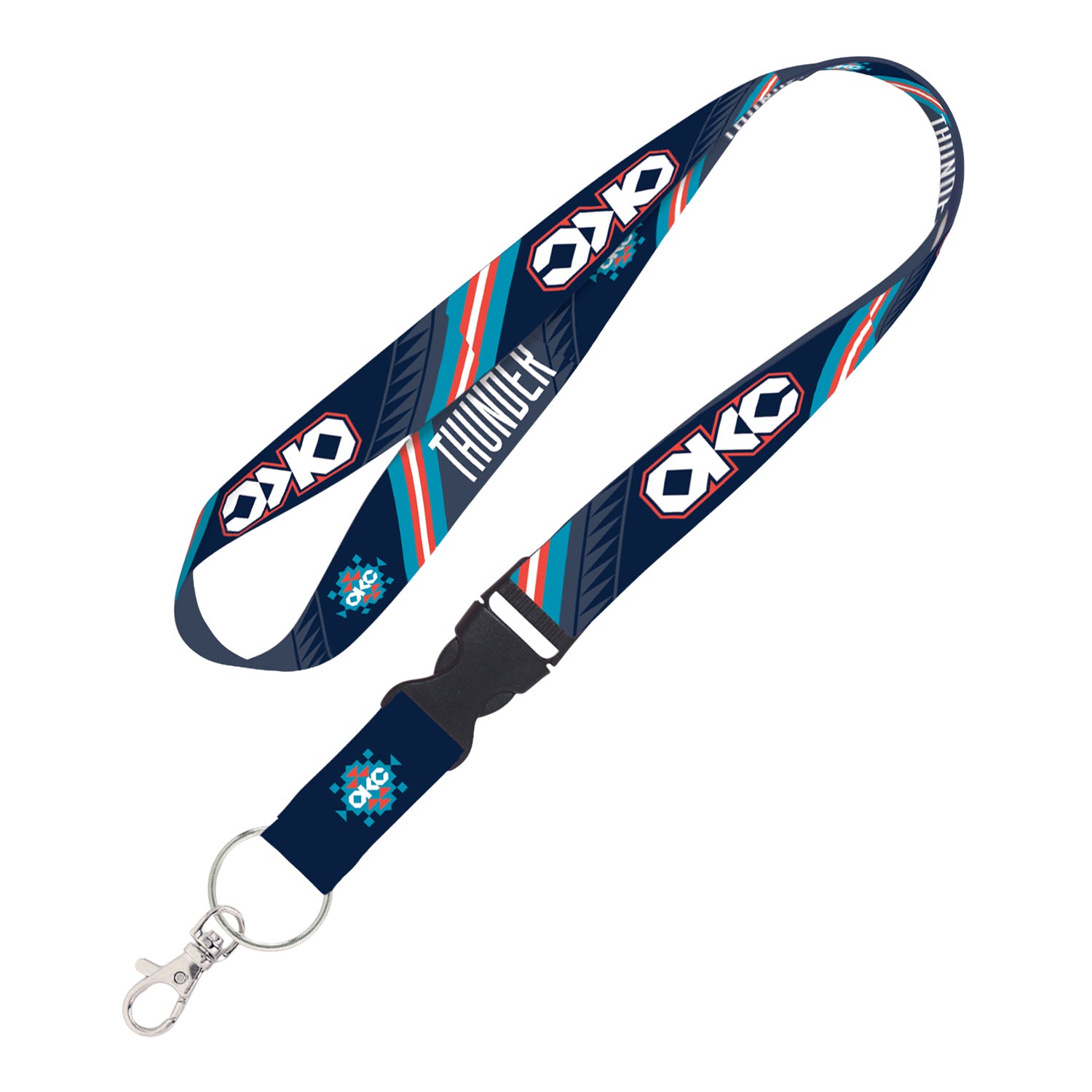Carry the spirit of OKC with the 2025-26 Thunder City Edition Lanyard. Featuring the City Edition design, this lanyard showcases the beautiful geometric patterns that honor Oklahoma's Native heritage. Perfect for keys, IDs, or badges, it's the ultimate fan accessory.